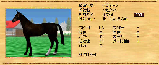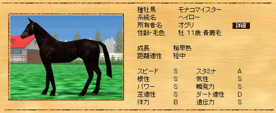 今後、種牡馬としての生活を送ることになるでしょう。今までご苦労様でした^^
