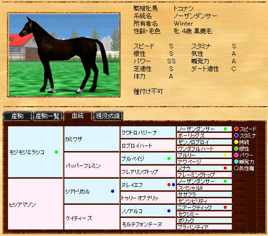 タビダチゼンヤ産駒です。ストームバード系はシーサー氏が強いのでシーサー氏にお任せです^^
