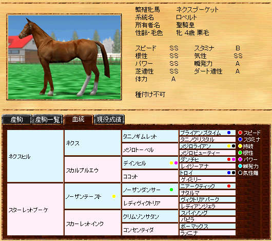 父セントプリズンより指数は低いものの、遺伝がSSに向上しているので期待が持てます。