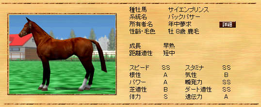 ◆父:サイエンパサー ◆母:サイエンクイーン ◆生涯成績:8-2-1-0