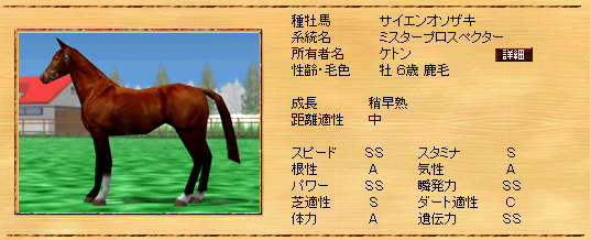 今後、種牡馬としての生活を送ることになるでしょう。今までご苦労様でした^^