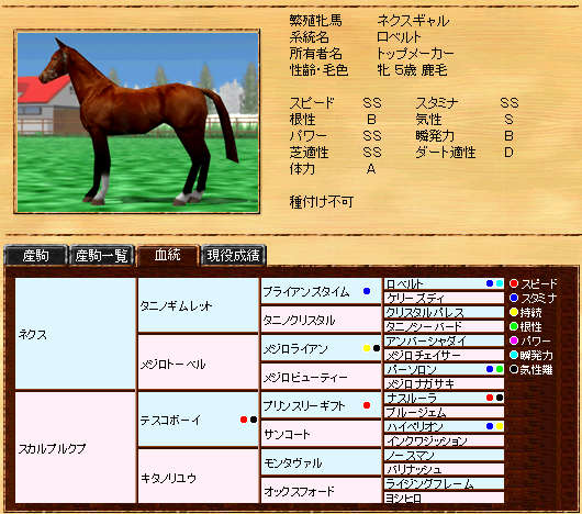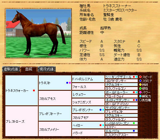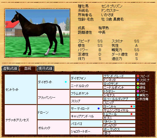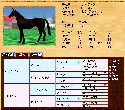 父セントプリズンより指数は低いものの、遺伝がSSに向上しているので期待が持てます。