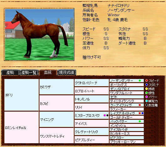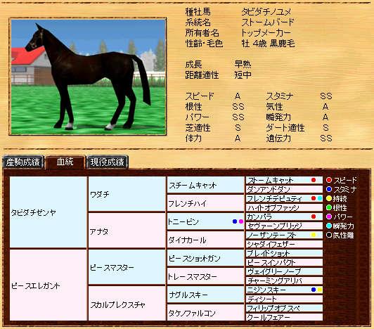 タビダチゼンヤ産駒です。ストームバード系はシーサー氏が強いのでシーサー氏にお任せです^^