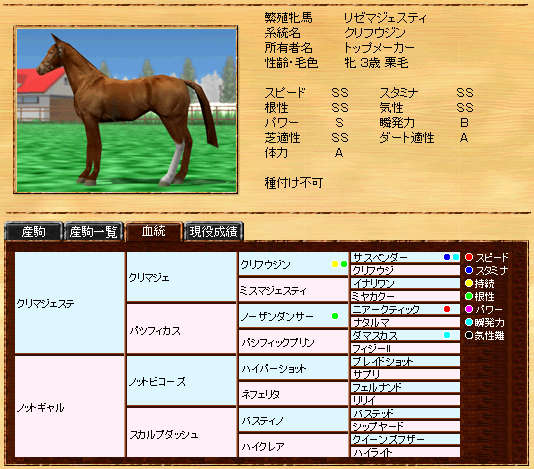希少レットゴット系種牡馬。残念な事に遺伝Aですが、代を重ねて必ず良種牡馬として発展させたいです。